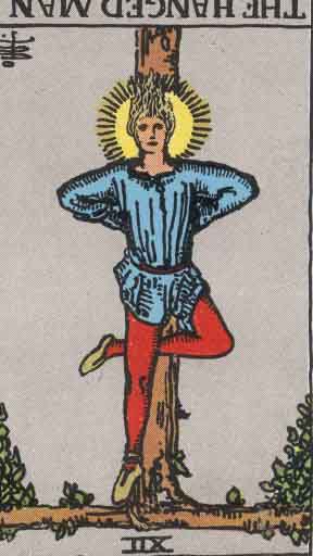 For me, the Hanged Man reversed reinforces the energy of the Ten of Wands reversed. The querant seems unwilling to let go of whatever situation is causing them this much strain, or else they don’t want to accept that the situation is too much for them. It reminds me of one of Saturday Night Live’s fake ads back in the golden days of the 80’s, a headache tablet commercial. A woman has an anvil on her head and is complaining about a headache, a parody of an actual ad at the time. She says she has tried everything. The announcer eventually asks her if she has considered taking the anvil off of her head. And of course, doing so cures the headache immediately.